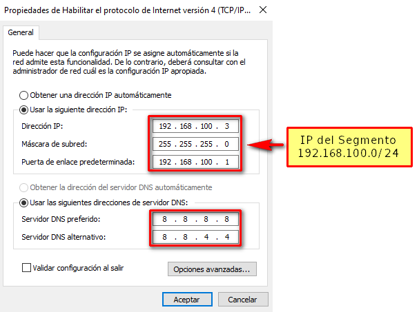 5 Una vez que hayamos asignado la IP, verificamos que tengamos salida a internet