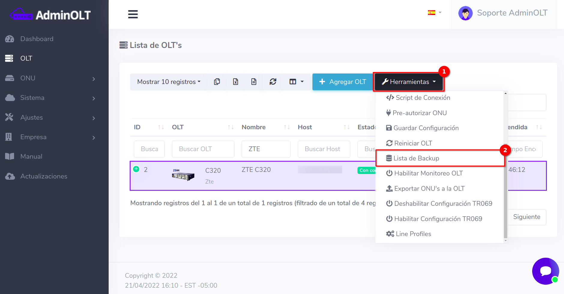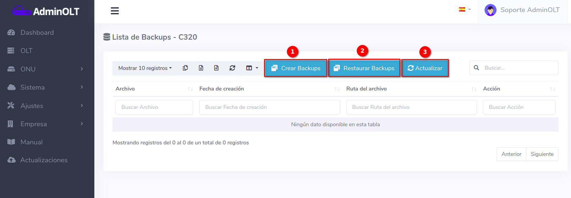3 Verificar el respaldo en AdminOLT