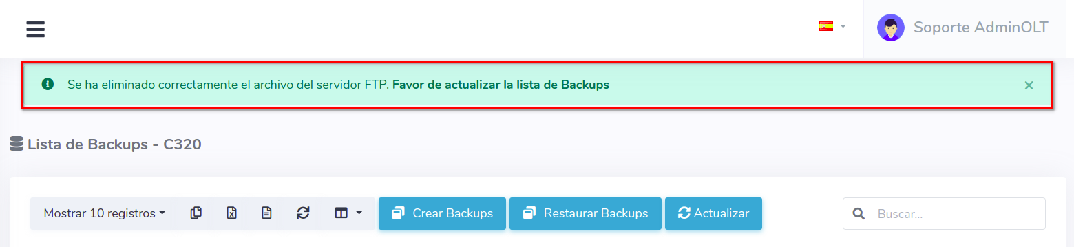 Eliminar respaldo desde AdminOLT