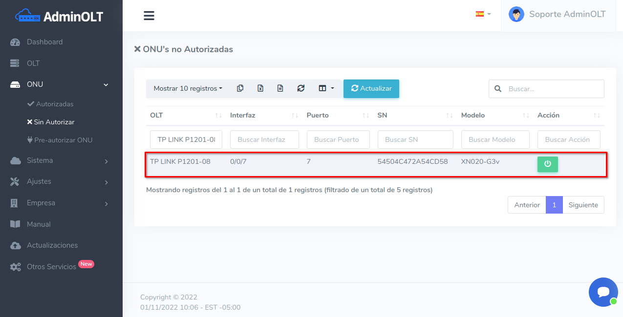Una vez autorizada la ONU podrán modificar sus planes de velocidad y vlans asociados a los servicios desde la Lista de planes de velocidad.