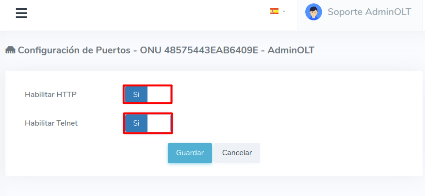 - Habilitar Telnet: Active o desactive la configuración del puerto Telnet