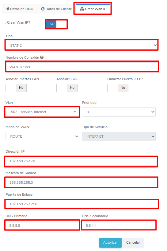 - Autorizar ONU con TR069