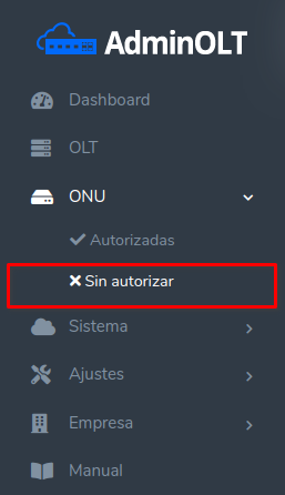 Para ver los dispositivos que aun no han sido autorizados debemos dirigirnos a la sección ONU > Sin Autorizar.