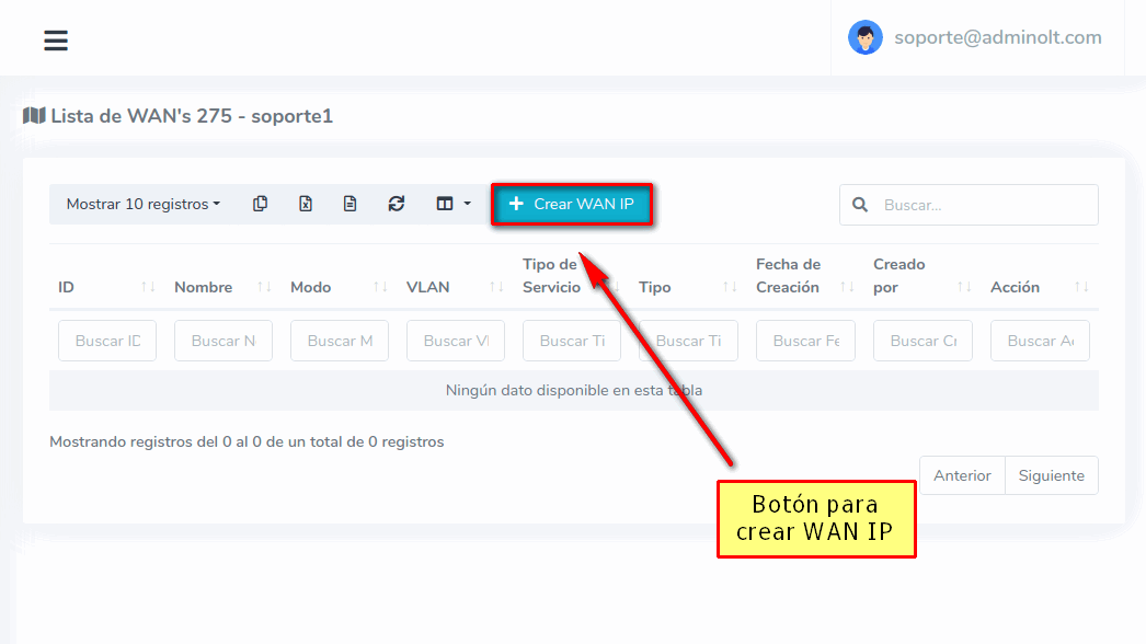 ¿Donde crear configuraciones WAN IP en AdminOLT?