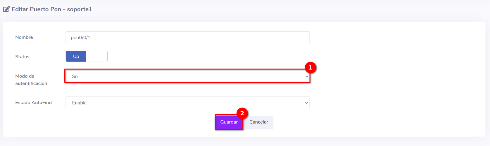 Configurar Puerto PON