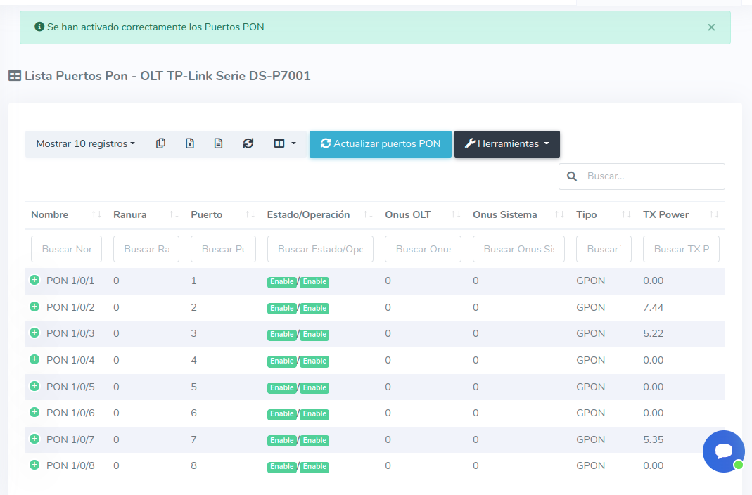 2 Estando en esta vista seleccionamos la opción Activar todos los puertos PON.