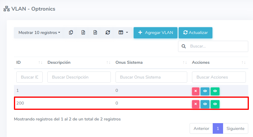 Crear VLAN en la OLT Optronics