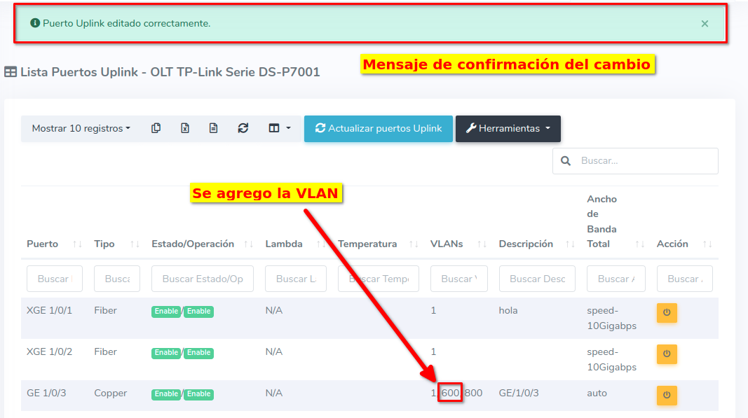 Habilitar puerto UPlink TP-Link Serie DS-P7001