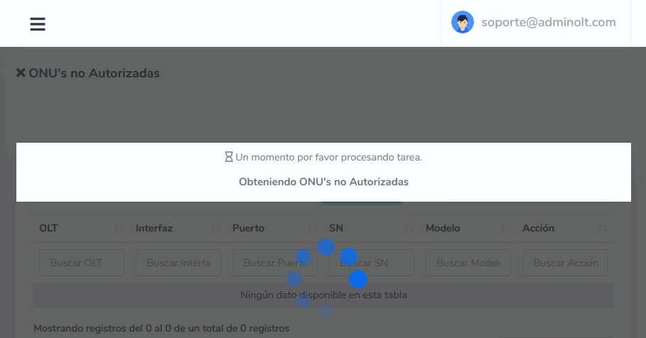 Podemos filtrar por OLT o por Todas las OLT´s y seleccionamos el boton morado "Filtrar".