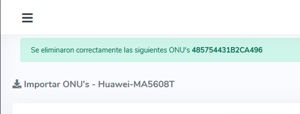Sí decide eliminar la onu de AdminOLT. De click en el siguiente botón